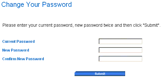 Once you’ve logged-in, you can change your Password. Click the “Change your Password” link on the left side of the Home screen. After clicking on the link, enter your current Password, enter your new Password twice, and then click "Submit".
