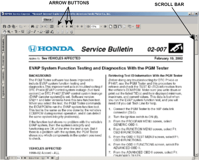 This tool bar is used for most service manual information in Service Express.