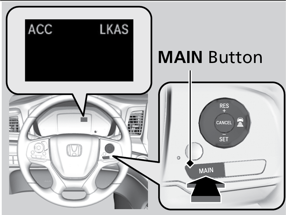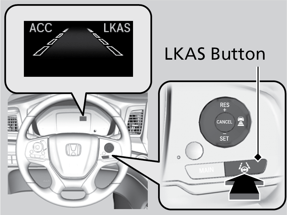 driver information interface. Dotted lane lines turn solid when the system activates.