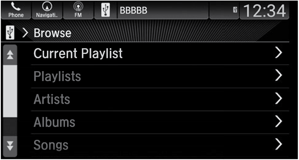 Use the touchscreen to search for tracks.
