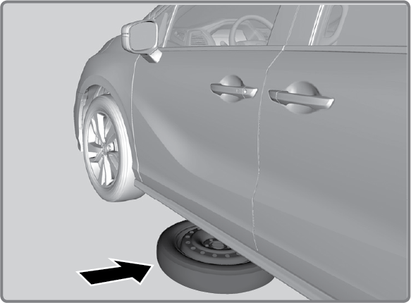 Place the compact spare tire (wheel side up) under the vehicle body, near the