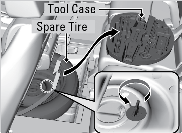 Take the tool case out. Take the jack and wheel nut wrench out of the tool case.