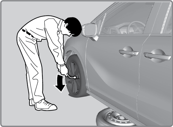 Loosen each wheel nut about one turn using the wheel nut wrench.