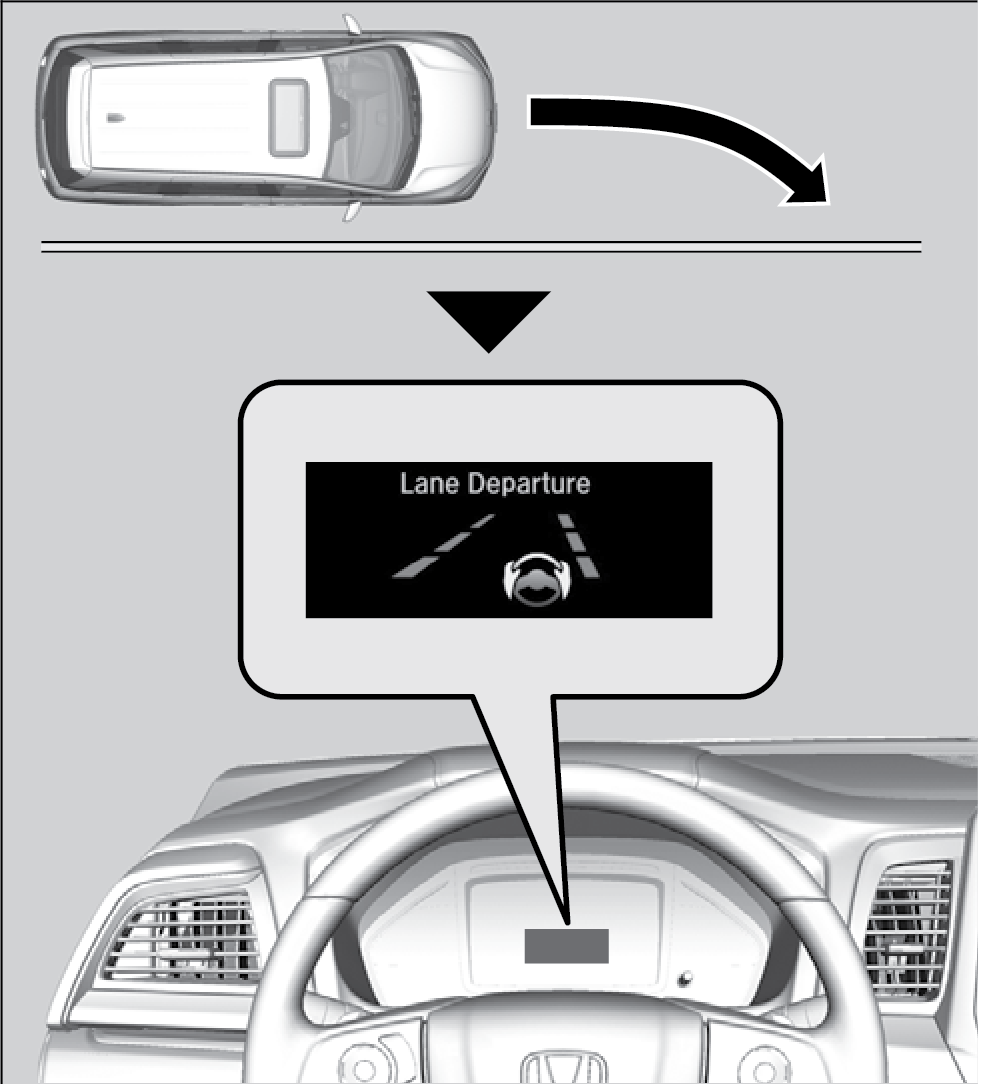 Braking may also be applied if the lane lines are solid and continuous. If the system operates several times without detecting driver response, the system beeps to alert you.