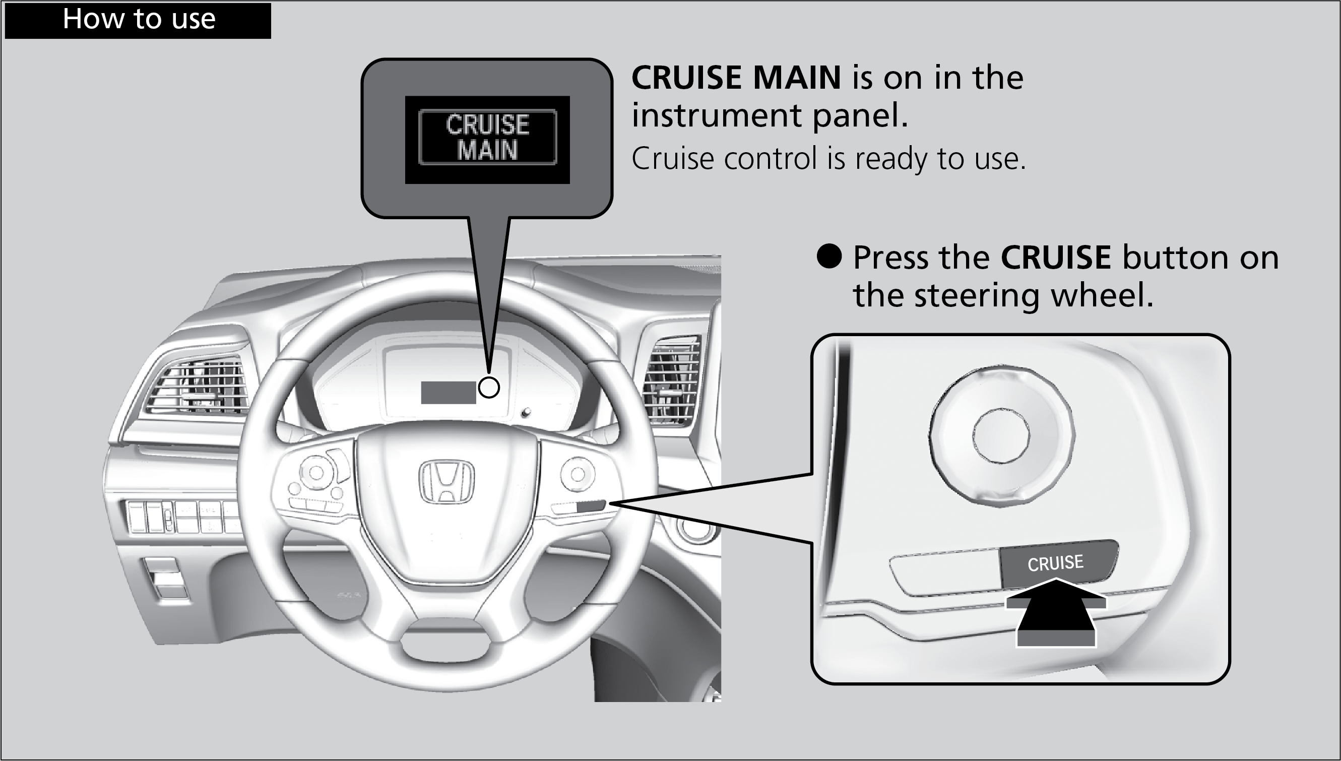 Maintain a constant vehicle speed without having to keep your foot on the accelerator pedal. Use cruise control on freeways or open roads where you can travel at a constant speed with little acceleration or deceleration.