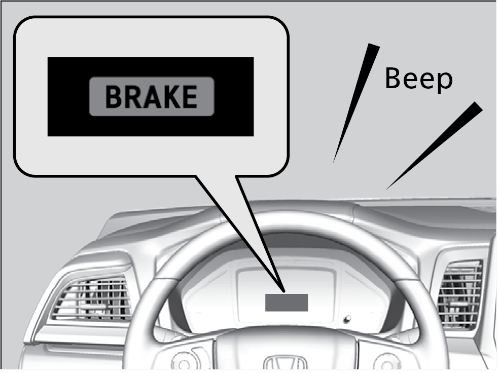 If a vehicle detected ahead of you slows down abruptly, or if another vehicle cuts in front of you, a beep sounds and BRAKE appears on the