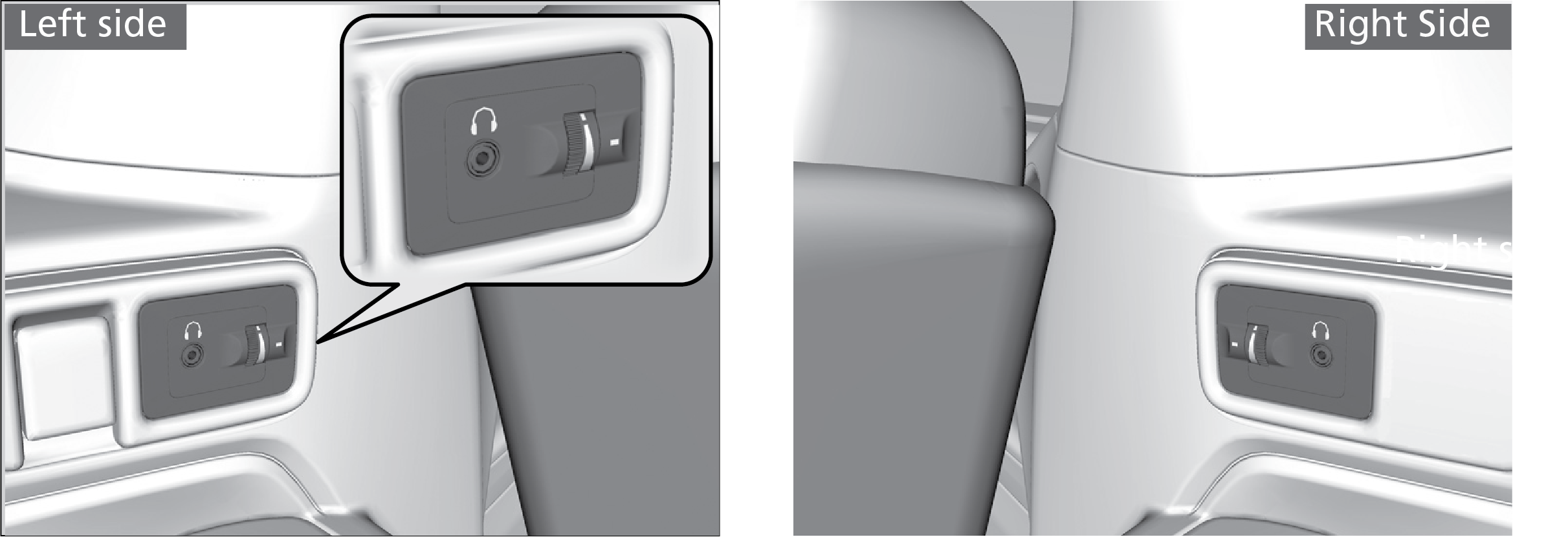 Headphone connectors for the Blu-ray/DVD rear entertainment system are on the both sides of the third row outer seats.