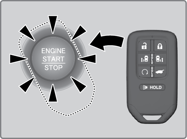 If the battery life in your remote transmitter is weak, a message appears in the driver information interface with information on how to start the engine.