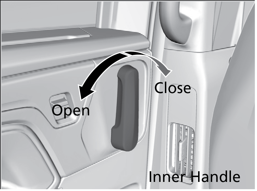 From the inside, grab the inner door handle and slide the door all the way to the front or rear.
