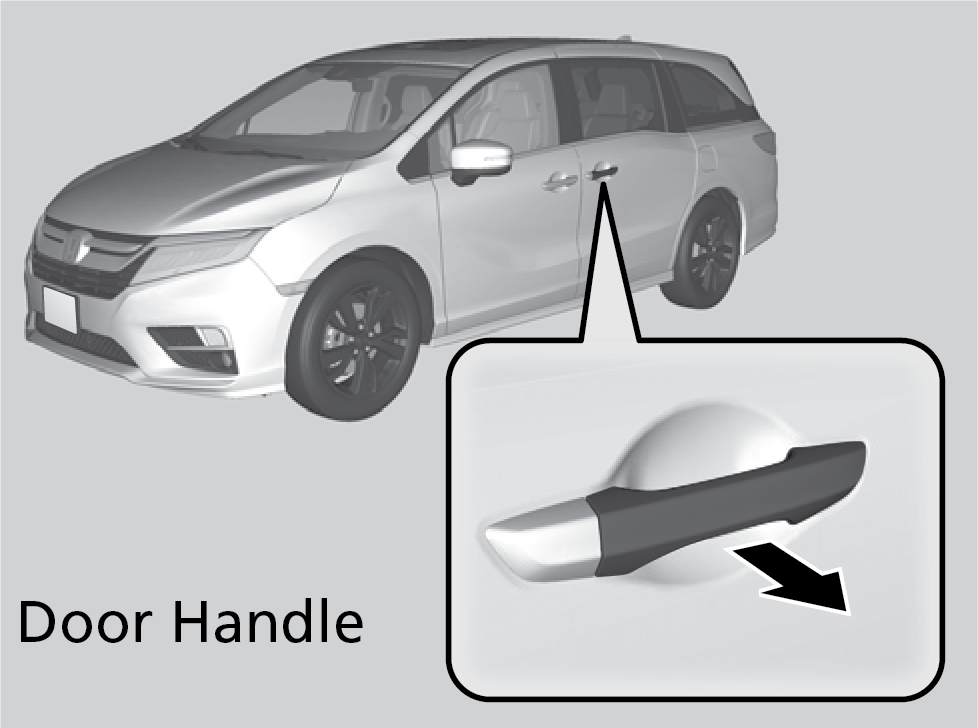 From the outside, pull the outer door handle and slide the door all the way to the front or rear.