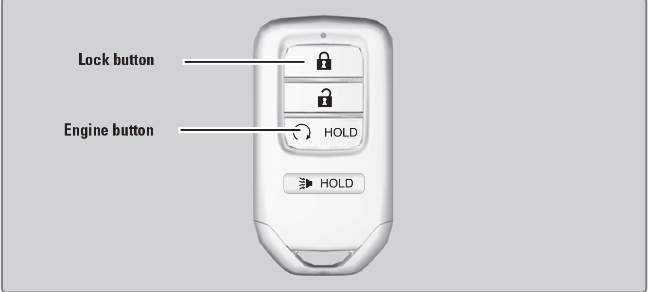 Press the Lock button, then press and hold the Engine button within 5 seconds to remotely start the engine.