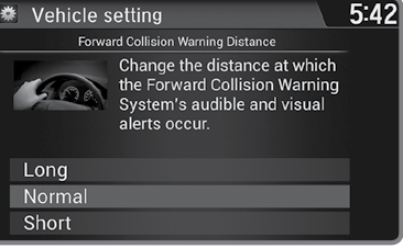 The speed difference between your vehicle and a vehicle or pedestrian detected in front of you is about 3 mph (5 km/h) and over with a chance of a collision.