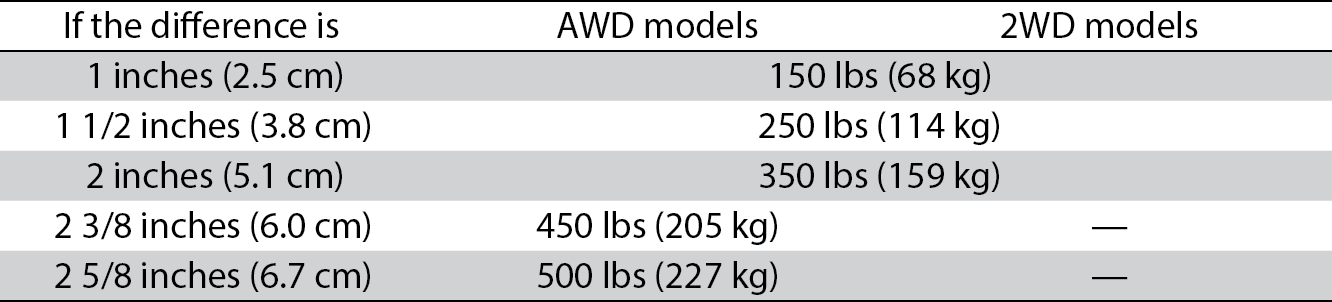 If the difference becomes more than indicated in the table, distribute the load or remove cargo as needed.