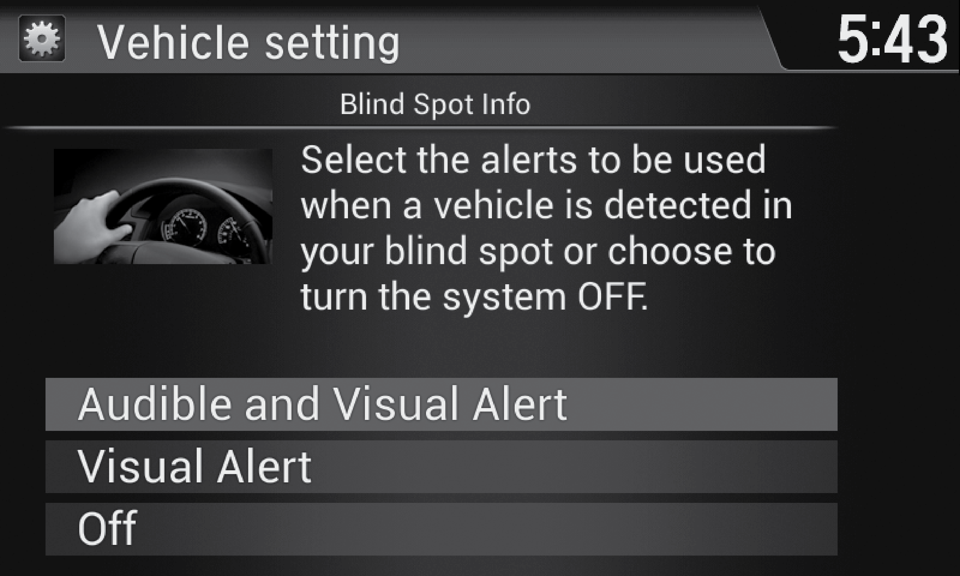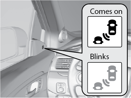 Alerts you to a detected vehicle in your left or right blind spot while driving 20 mph (32 km/h) or higher.