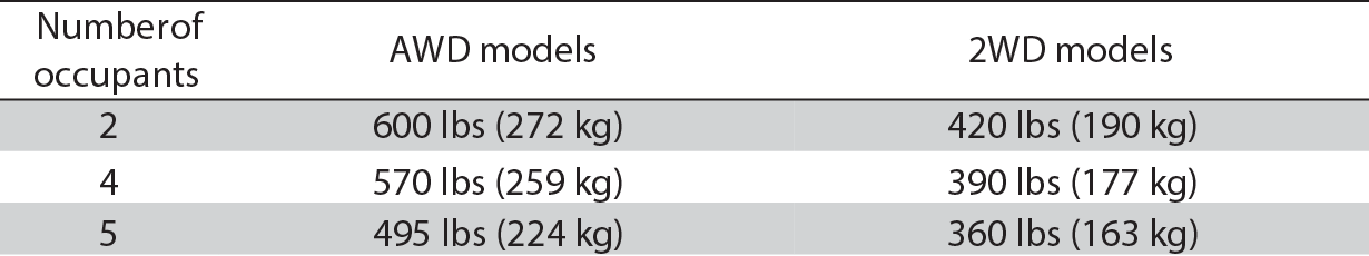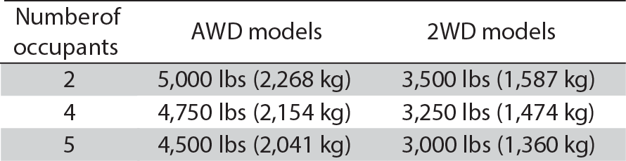 In addition, the total weight of the vehicle, all occupants, accessories, cargo, and trailer tongue load must not exceed the Gross Vehicle Weight Rating (GVWR) or the Gross Axle Weight Rating (GAWR). Both are on a label on the driver’s doorjamb.