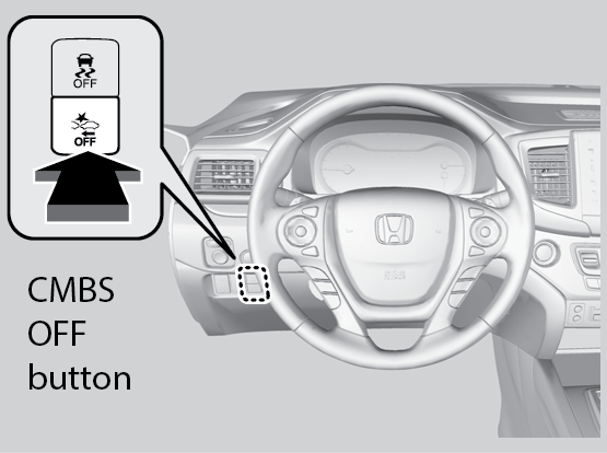 CMBS is designed to reduce the severity of an unavoidable collision. It does not prevent collisions nor stop the vehicle automatically. It is still your responsibility to operate the brake pedal and steering wheel appropriately according to the driving conditions.