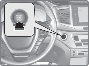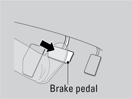 Starting the engine: Press and hold the brake pedal, then press the ENGINE START/STOP button. Keep your foot firmly on the brake pedal when starting the engine.