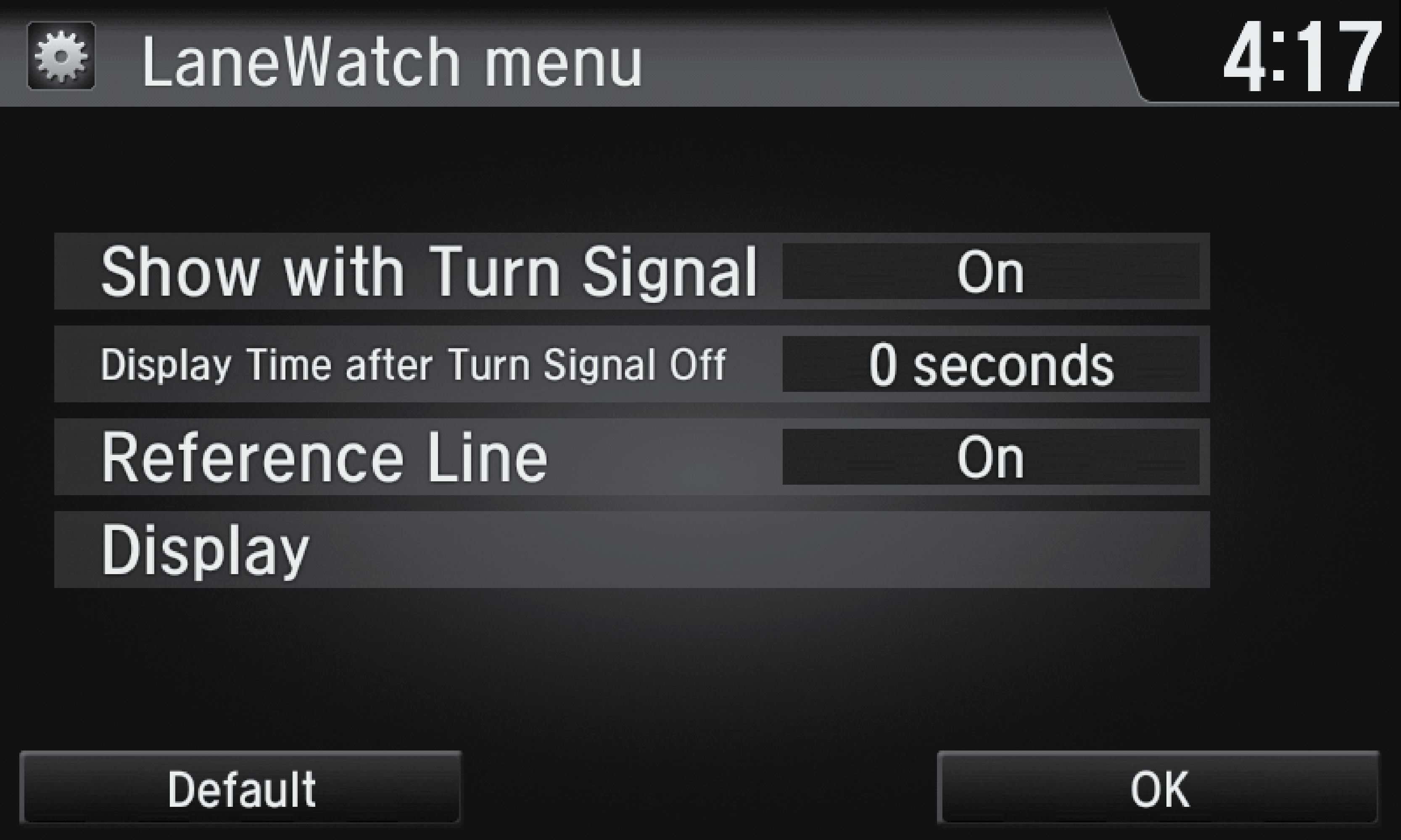 You can also press the LaneWatch button on the end of the turn signal switch to view a constant real-time display. Press it again to turn the display off.