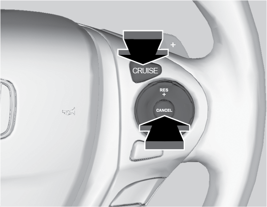 Each time you press the button, the vehicle speed is increased or decreased by about 1 mph (1.6 km/h). If you keep the button pressed, the vehicle speed increases or decreases by 5 mph or 5 km/h until you release it.
