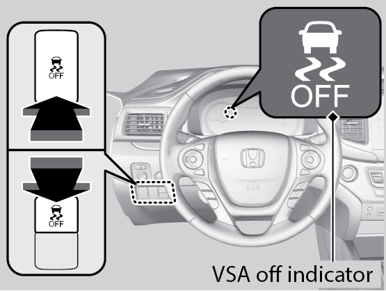 Press and hold the VSA OFF button until you hear a beep to turn VSA on or off. The VSA OFF indicator appears when the system is off.