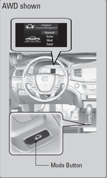 Sand*1: Use when driving on a soft, sandy road or off-road surfaces.
