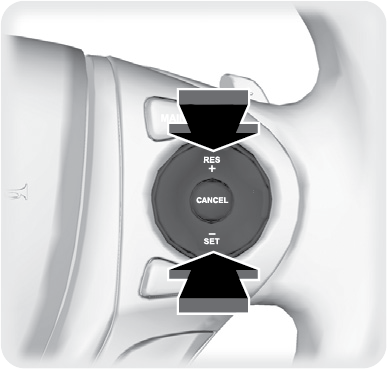 After cruise control has been canceled, you can still resume the prior set speed by pressing the RES/+ button while driving at a speed of at least 25 mph (40 km/h).