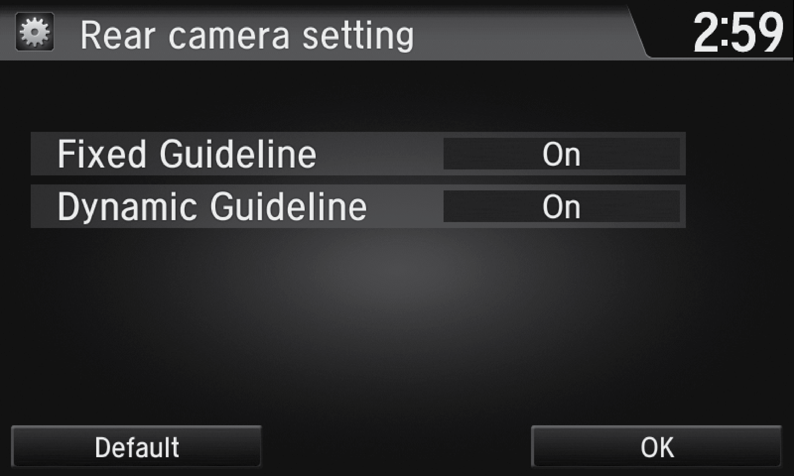Dynamic Guidelines: Guidelines move as you turn the steering wheel. Select On or Off.