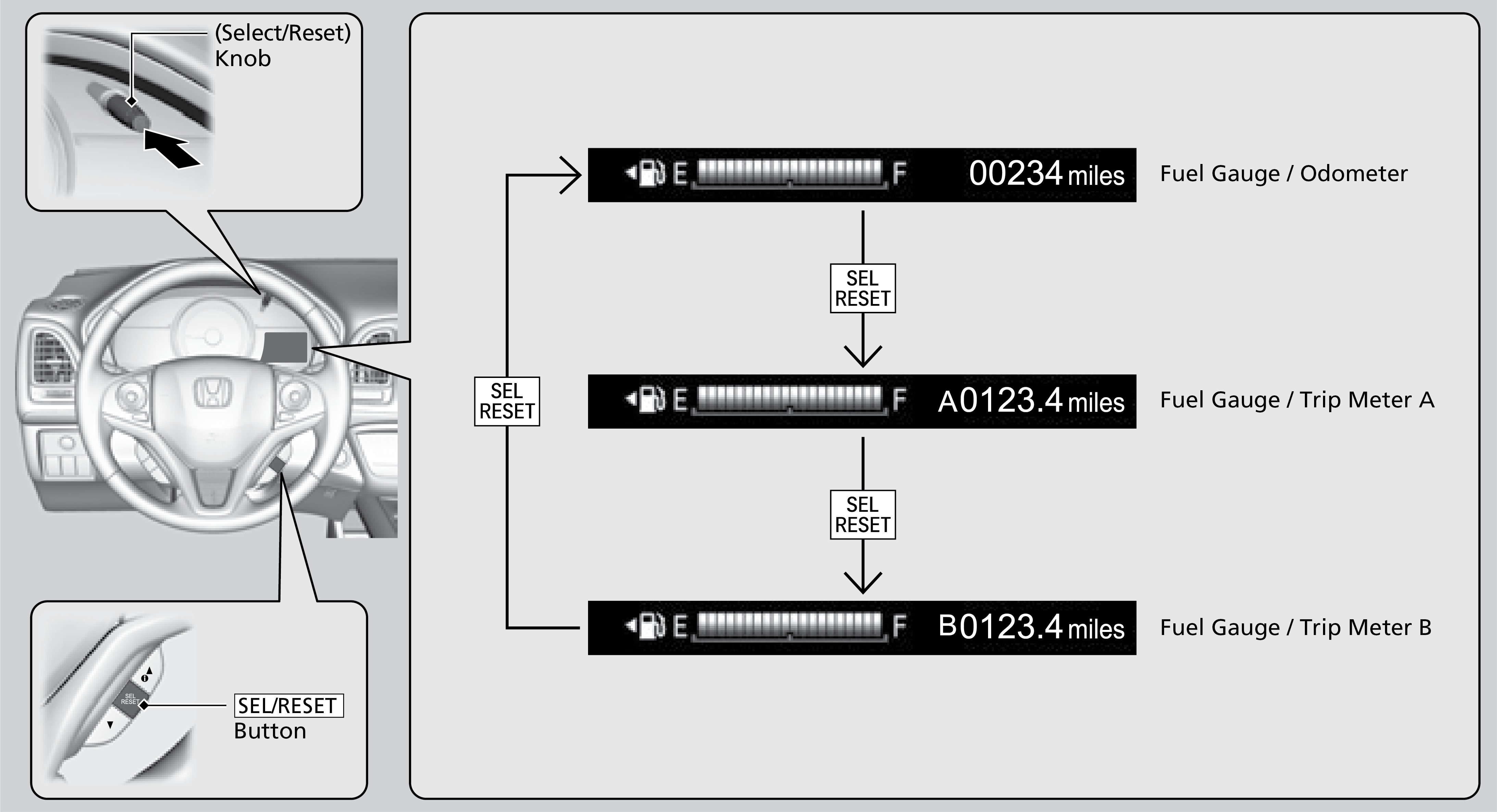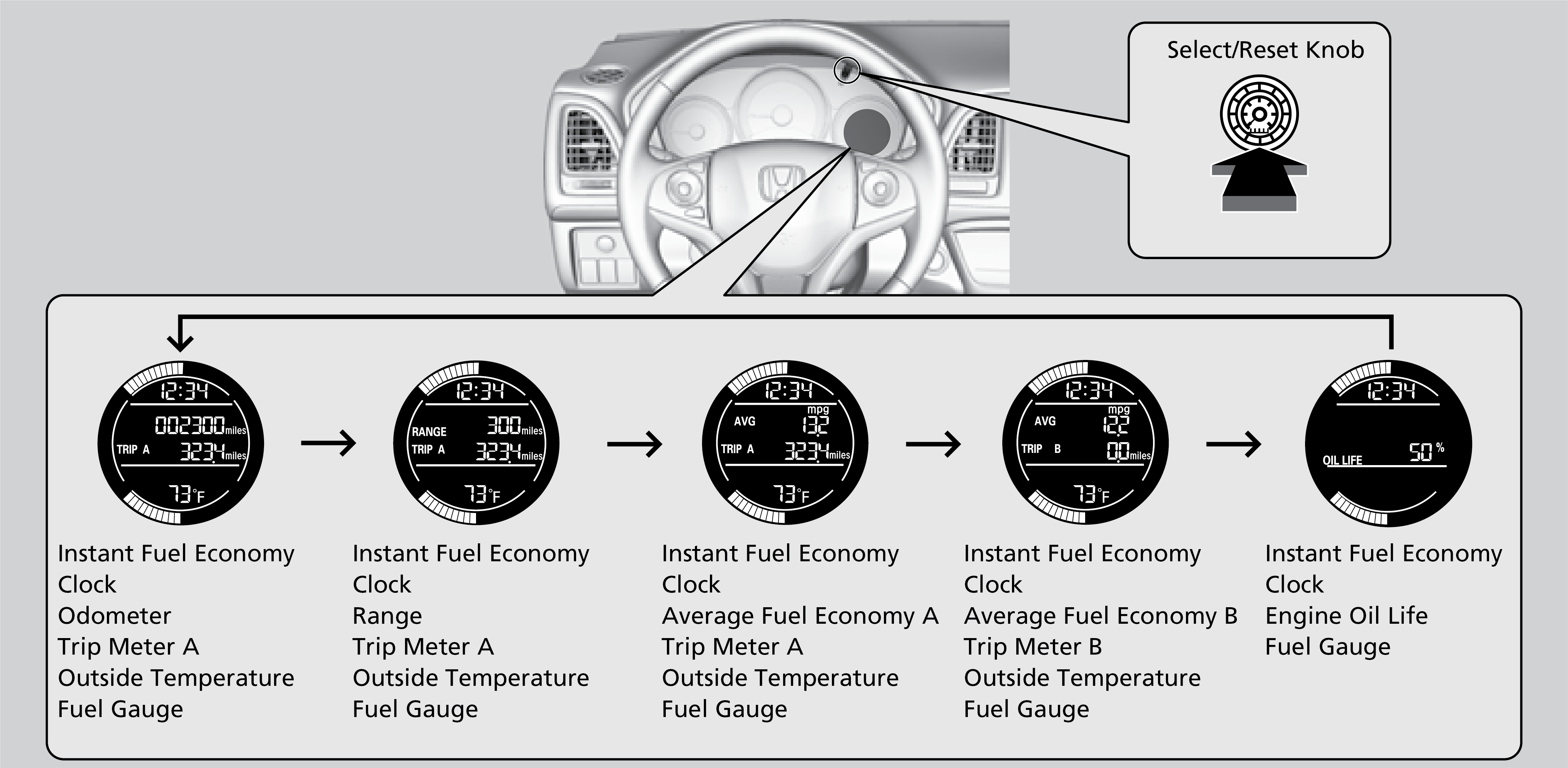 Press the Select/Reset button to cycle through the lower displays shown below: