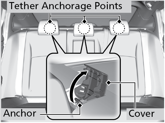 - Lower the outer head restraint to its lowest position, then route the tether strap over the head restraint.