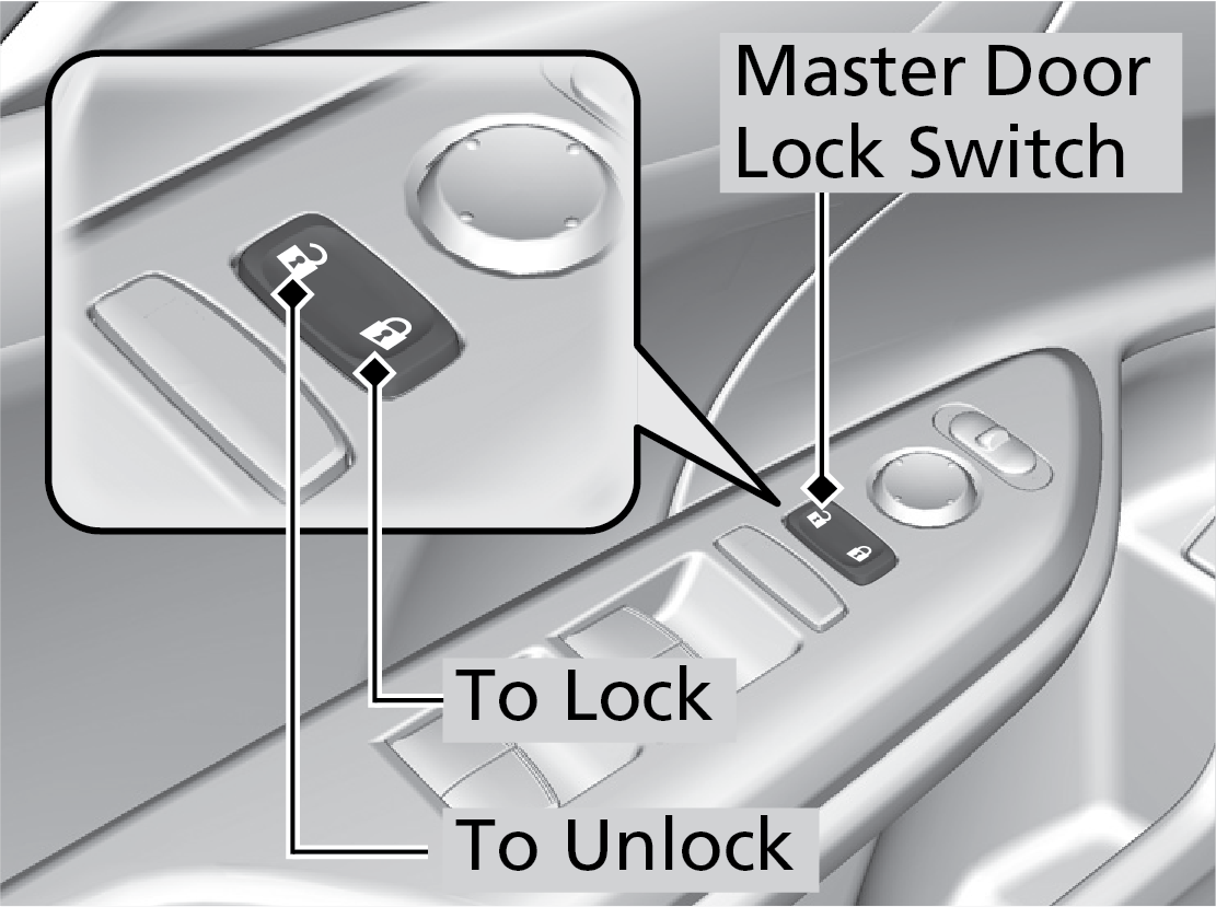 To lock: Press the lock side of the switch to lock all doors and the trunk.