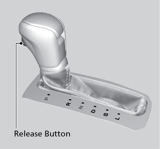| Park (P): | Used for parking or starting/ stopping the engine. Press the brake pedal, then press the release button to shift. |