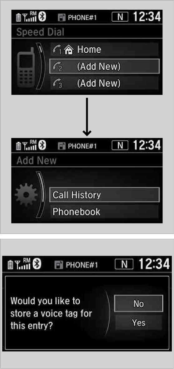 - When the speed dial is successfully stored, you are asked to create a voice tag for the number. Rotate the selector knob to select Yes or No, then press it.
