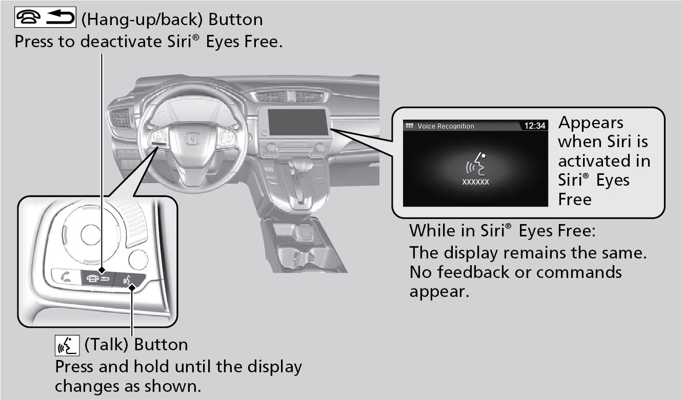You can talk to Siri using the Talk button on the steering wheel when your iPhone® is paired to the Bluetooth® HandsFreeLink®.