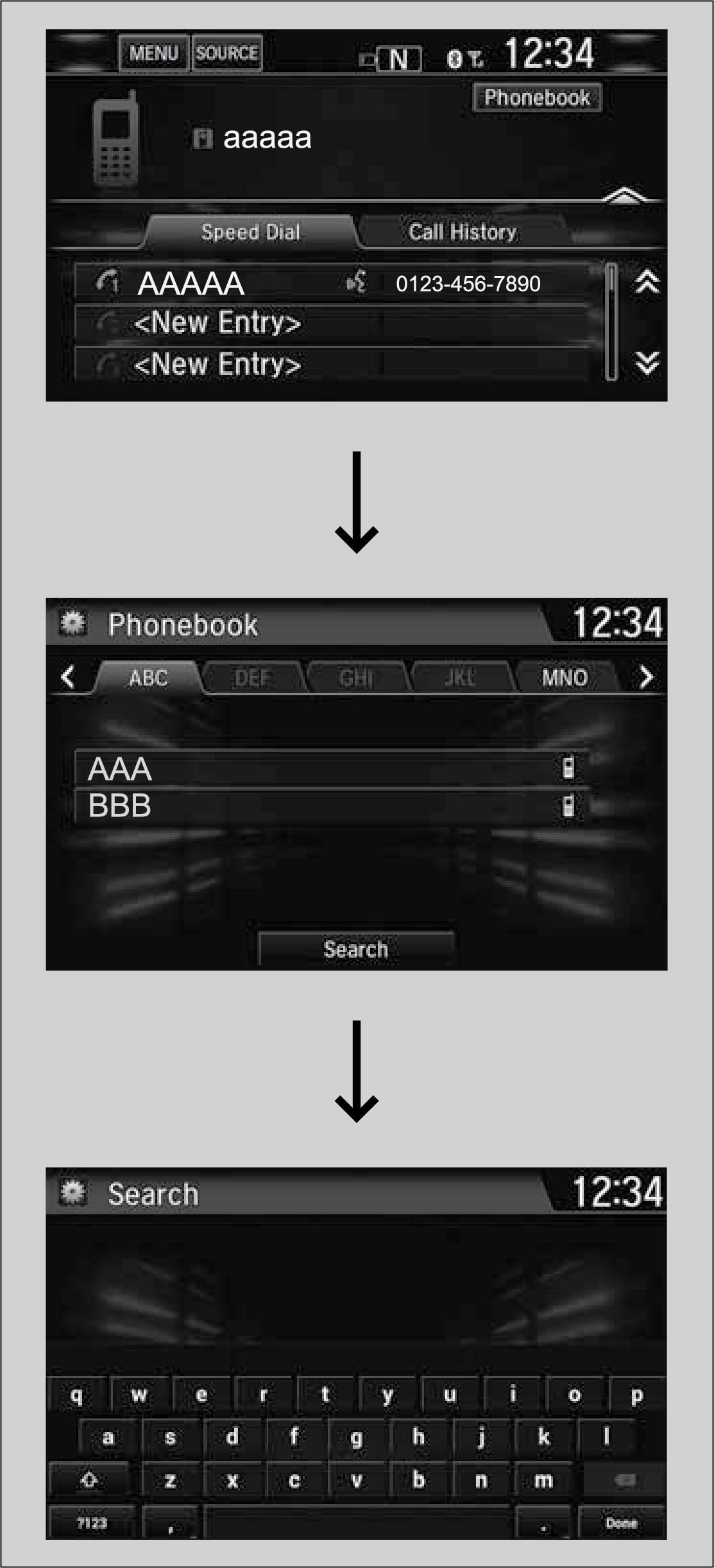 Use the keyboard on the touch screen for entering name, if multiple numbers exist select a number.