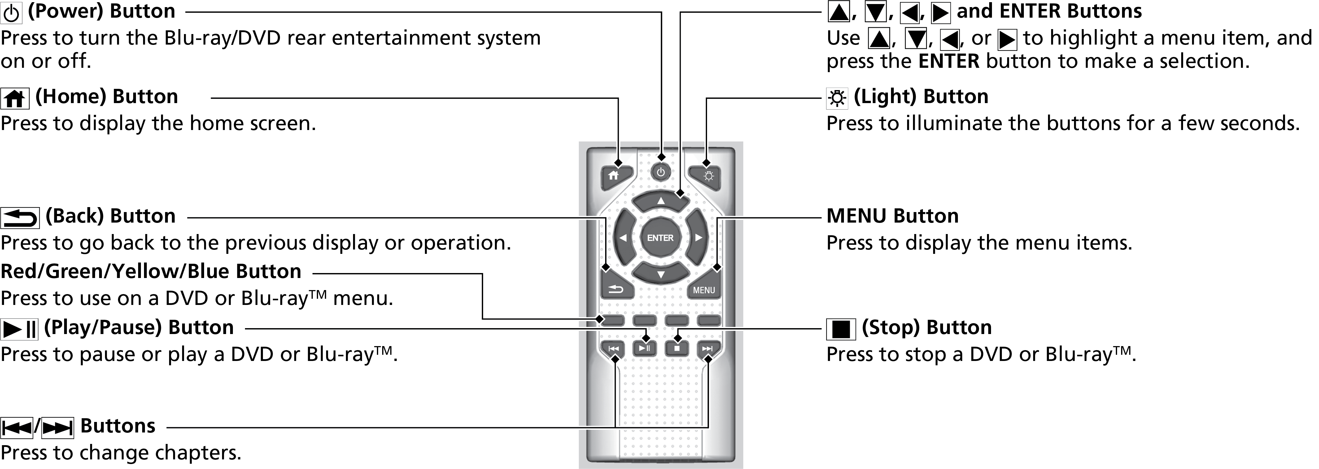 Radio Frequency Radiation Exposure. The Rear Entertainment System remote complies with FCC radiation exposure limits set forth for an uncontrolled environment and meets the FCC Radio Frequency (RF) Exposure Guidelines. The Rear Entertainment System remote should be kept at least 7.9 inches (20 cm) or more away from a person's body when operated.