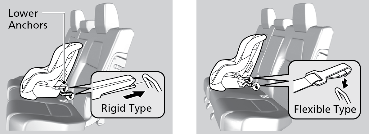 Do not use the lower inner anchors of the outer rear seats to secure a LATCH-compatible child seat to the rear center seat, unless the manufacturer's instructions for that system permit the use of inner anchors with the stated spacing.