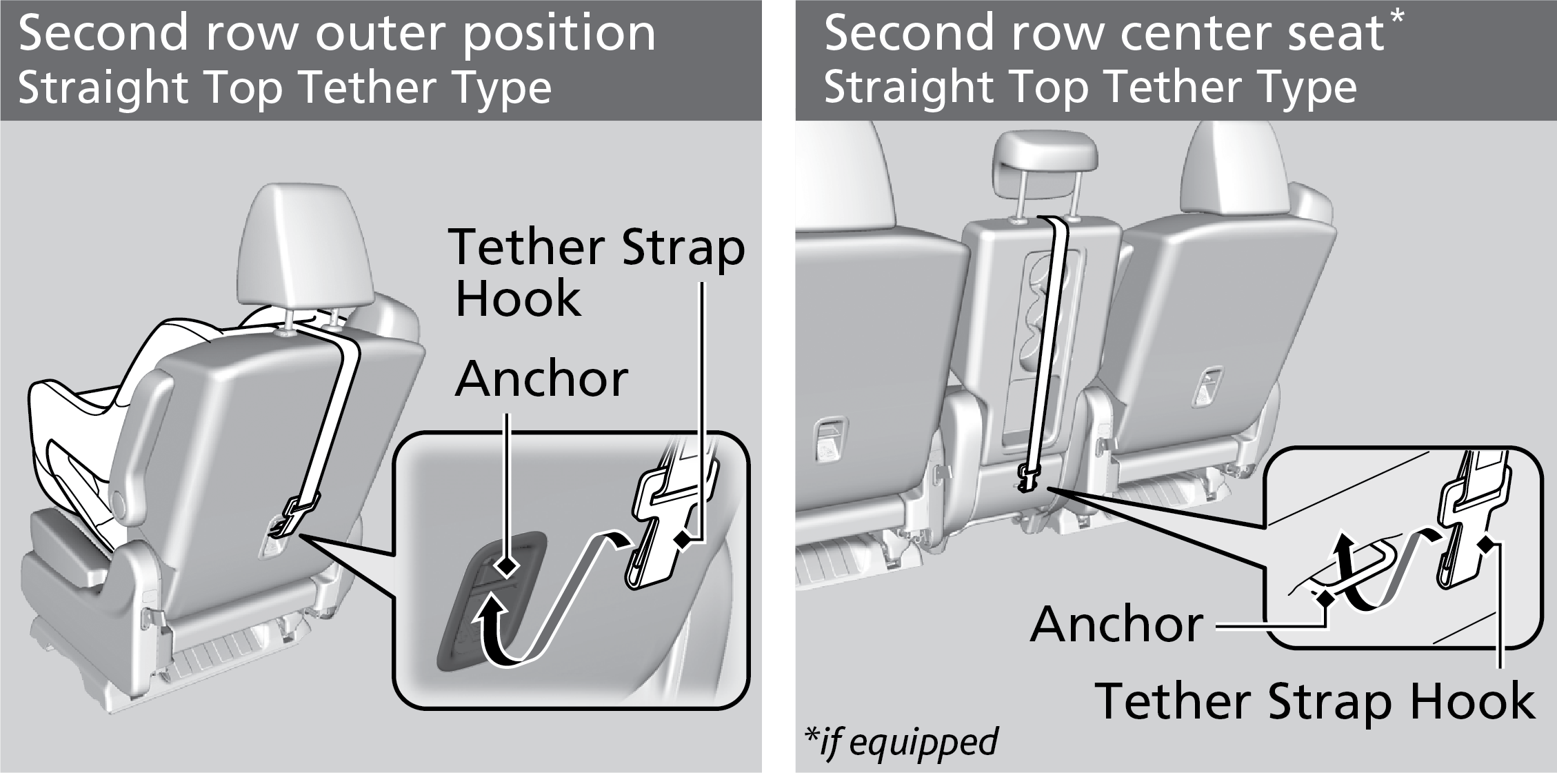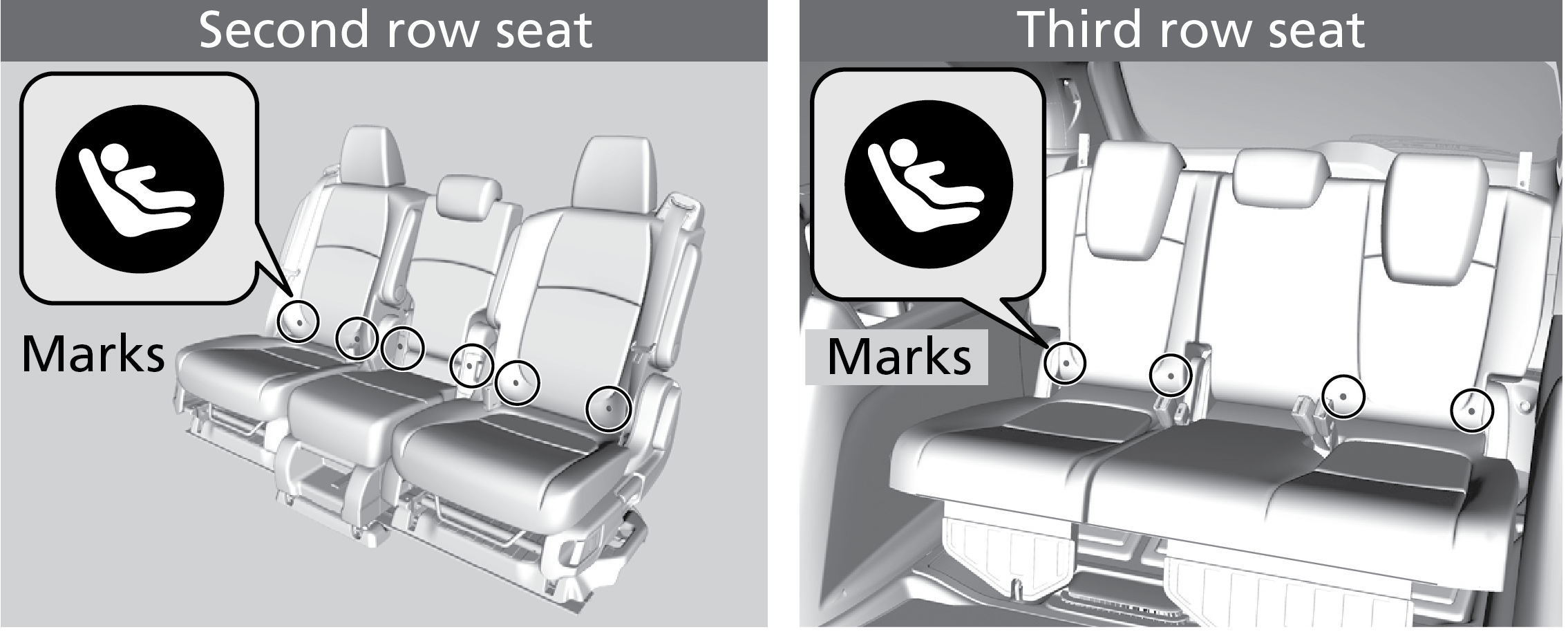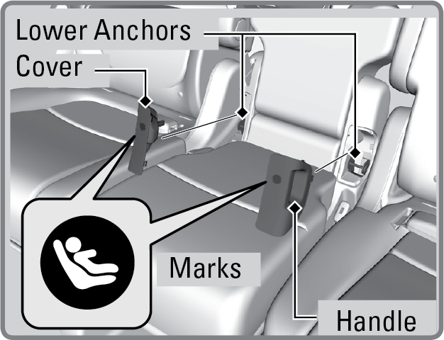 - To install a child seat in the second row center seat, remove the covers on each lower end of the seat-back by pulling on the handles.