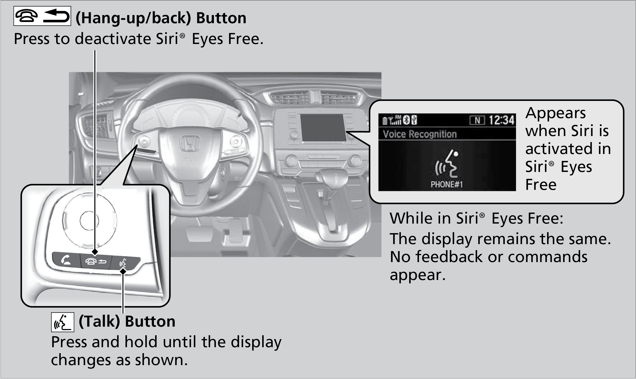 You can talk to Siri using the Talk button on the steering wheel when your iPhone® is paired to the Bluetooth® HandsFreeLink®.