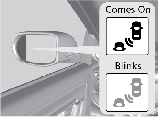 20 mph (32 km/h) and 100 mph (160 km/h). When the system detects vehicles approaching from behind in adjacent lanes, the appropriate indicator comes on for a few seconds, providing assistance when you change lanes.