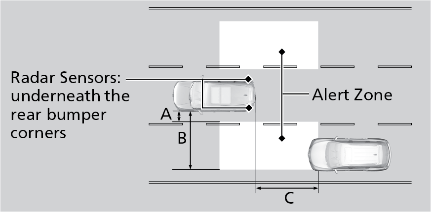 Alerts you to a detected vehicle in your left or right blind spot while driving between