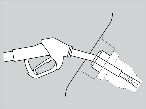 Place the end of the filler nozzle on the lower part of the filler opening, then insert it slowly and fully.