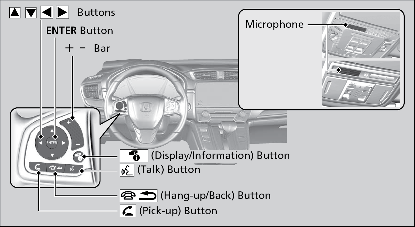 | Up/Down buttons: | Press to select an item displayed on the phone menu in the Driver Information Interface. |