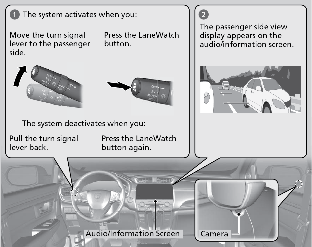 Allows you to check the passenger side rear areas displayed on the audio/information screen when the turn signal is activated to the passenger’s side.