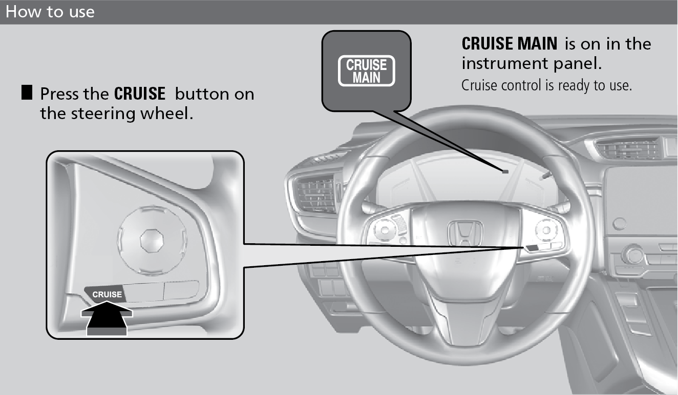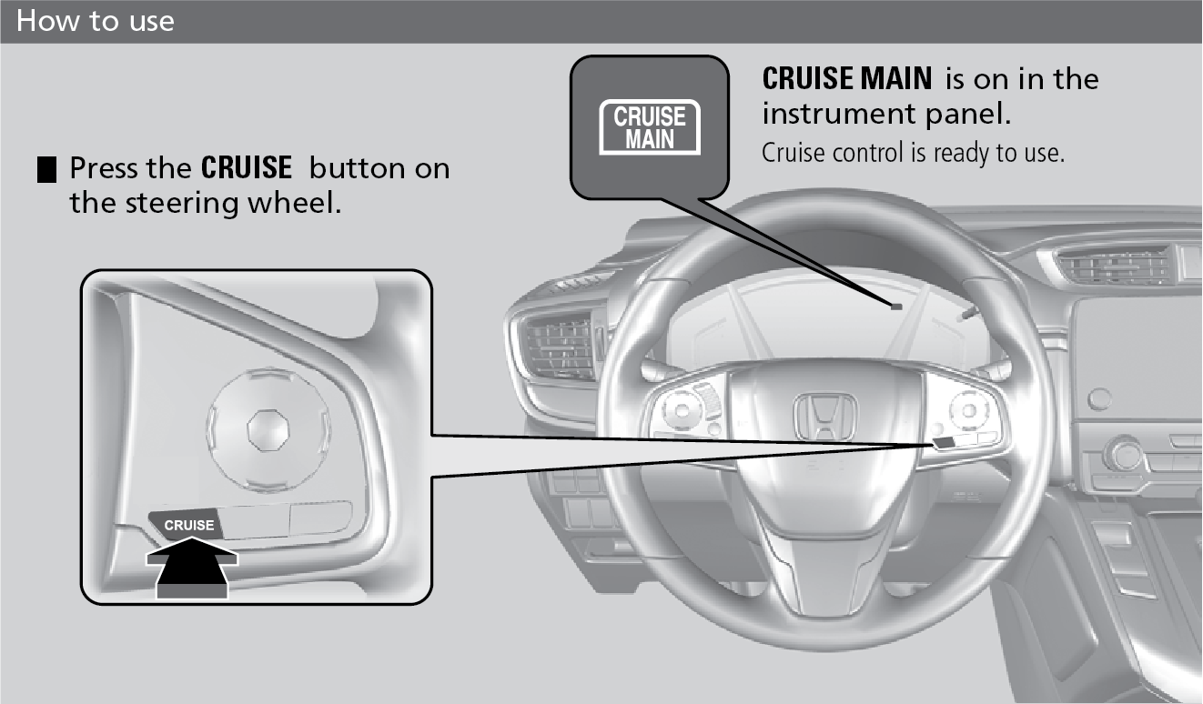 Maintain a constant vehicle speed without having to keep your foot on the accelerator pedal. Use cruise control on freeways or open roads where you can travel at a constant speed with little acceleration or deceleration.