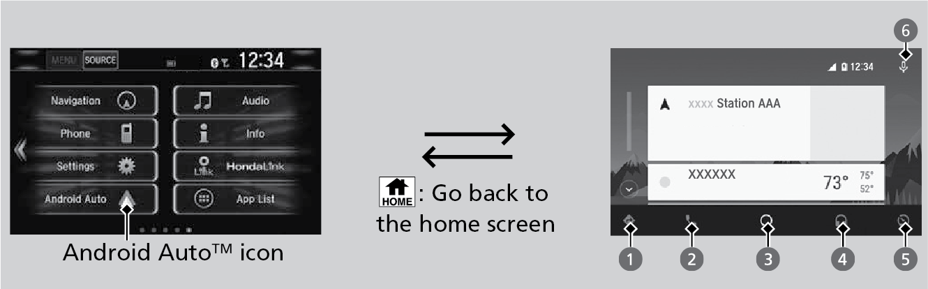 Android Auto™, you can use the audio/information screen to access the Phone, Google Maps (Navigation), Google Play Music, and Google Now functions. When you first use