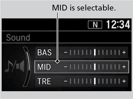 Press the Sound button and rotate the selector knob to scroll through the following choices: