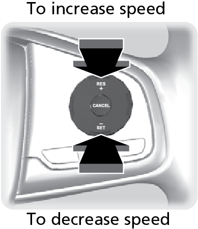 Press the RES/+ button to increase speed or the -/SET button to decrease speed.