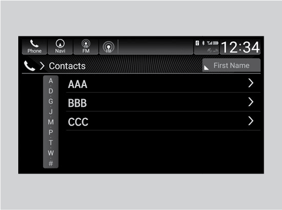 You can sort by First Name or Last Name. Select the icon on the upper right of the screen.