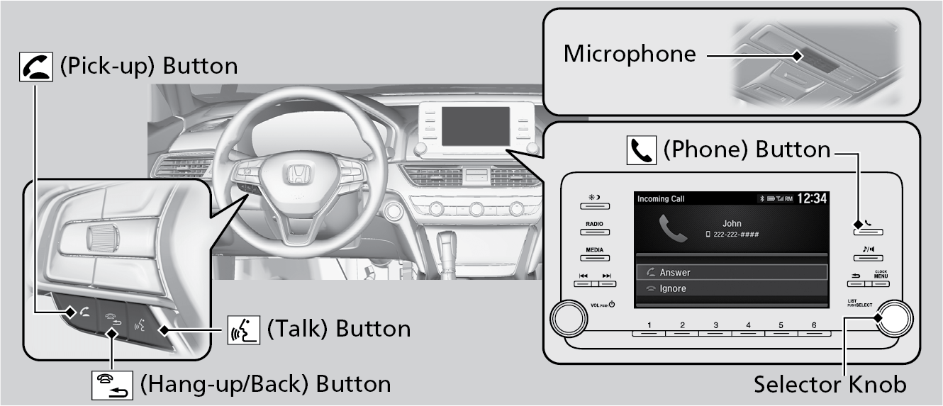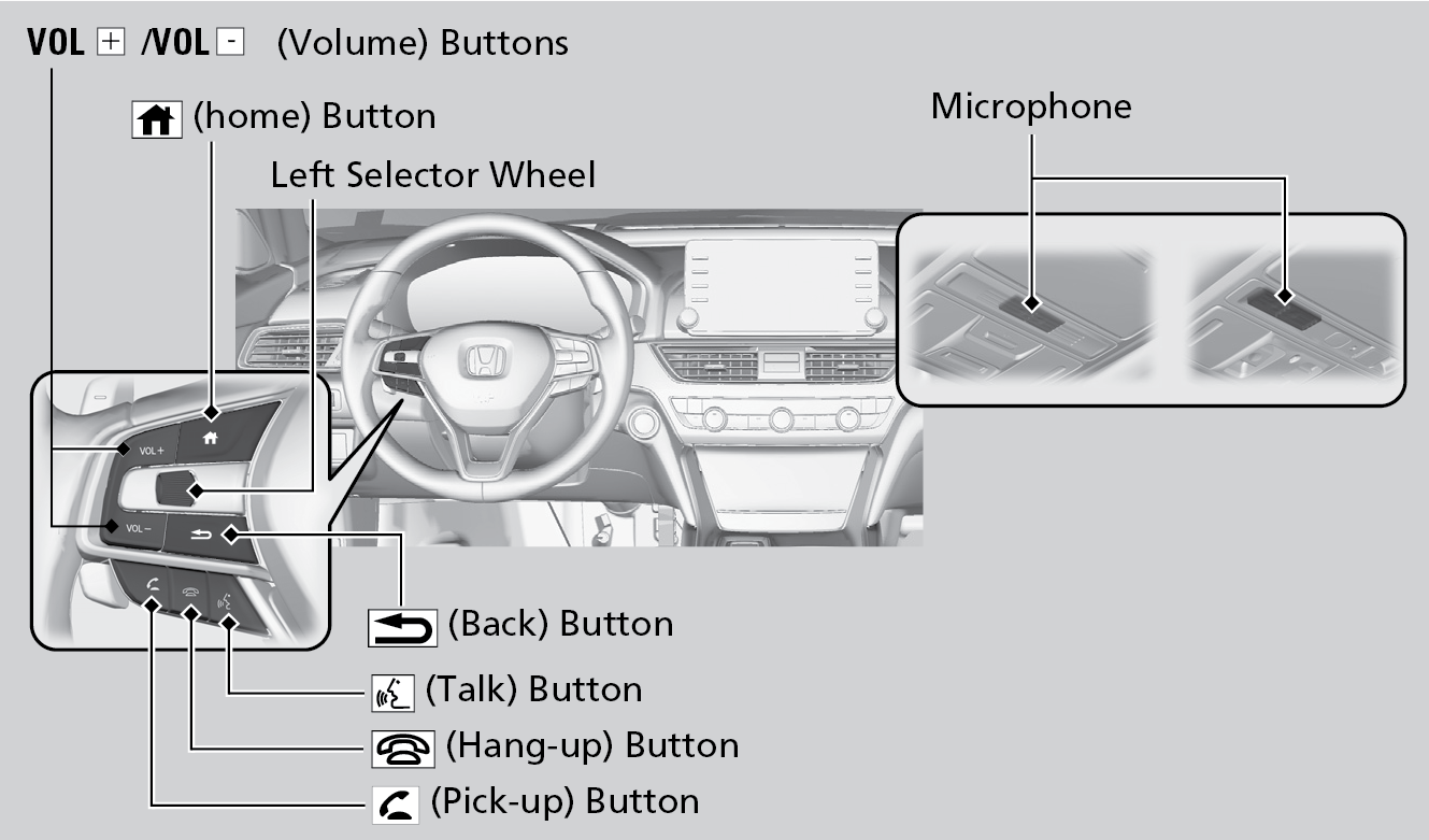 | Left Selector Wheel: | Press home button, then roll up or down to select Phone on the driver information interface, and then press the left selector wheel. |