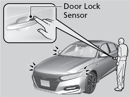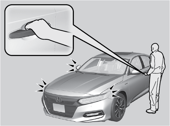 Grab the driver’s door handle to unlock the driver’s door and fuel fill door. Grab the front passenger’s door handle